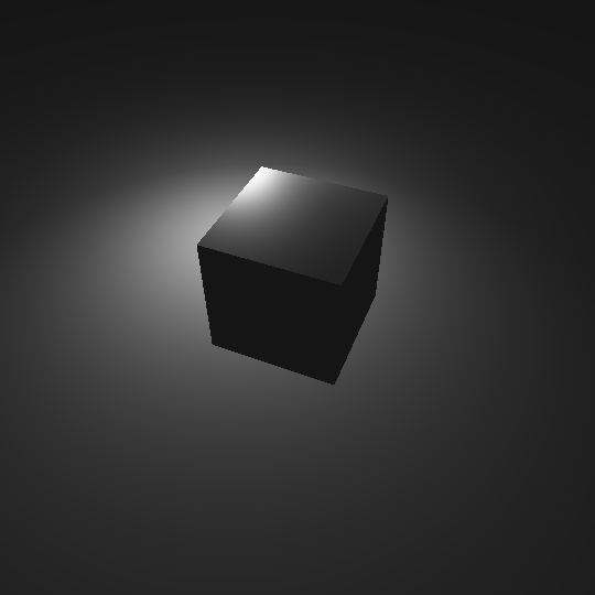 I'd say we have a pretty good render on our hands. We still have more to do, however. We need to include specular highlights in the image, in other words we need to be able to make it shiny. We should also include the ambient light, so that objects can appear to be lit indirectly. Ambient light is the easiest, it's just a constant brightness added to each point. For the test render the ambient brightness will be very high (40cd). You can see on the top of the sphere where the values get maxed out, we might want to decide to fudge the numbers a bit to prevent that later.